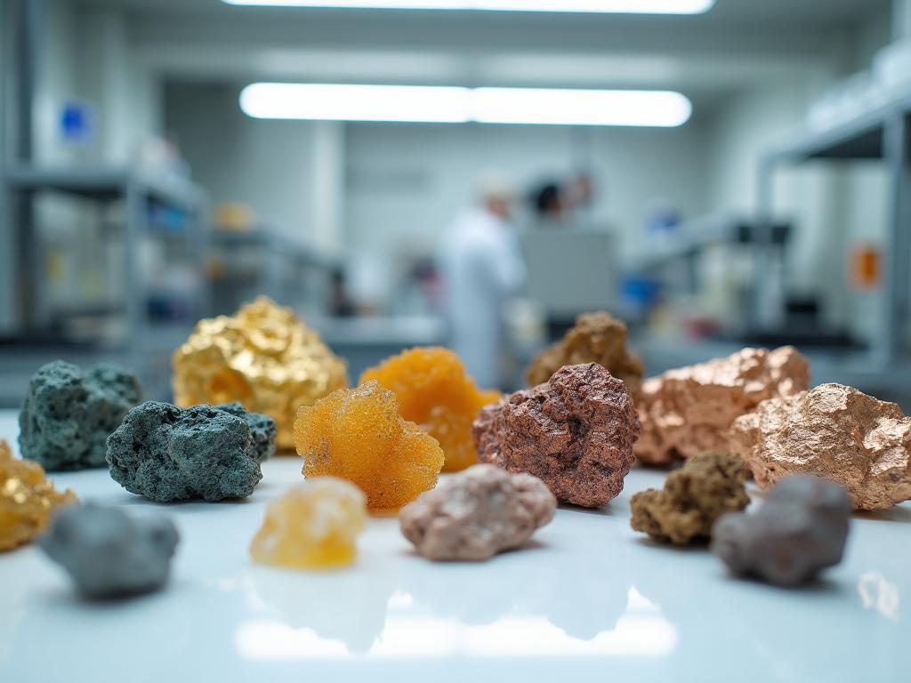 Mineral materials commonly tested in mining operations, including: